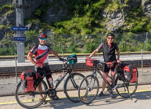 Mit der ÖBB geht es von Insbruck Hbf. nach Imst, wo wir auf den Fernradweg stoßen. Der Start der Tour fühlte sich gut an. Ein schöner heißer Sommertag; so kann es bleiben. Es war auch der einzige Tag mit Rückenwind. Was wir gelernt haben: Der sog. "Talwind" bläst bergauf und wird zum Abend hin immer stärker. Pfunds ist ein angenehmer Touristenort mit zahlreichen Restaurants. Wir essen im Kreuz. Dort fliehen wir nach kurzer Zeit draußen vor dem immer heftiger werdenden Talwind in den Gastraum. Ü/F (137,60 EUR) in der Pension Gabl [Dorf 104; Tel. +43 5474 5060 und 43 660 43 23 287]. Sehr gepflegte Unterkunft, geschmackvolles großes Zimmer, reichliches Frühstück, sehr nette Wirtin. |
