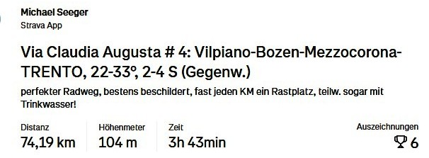 23.06.2025 (4) Vilpian - Bozen - Trento: 75 km, 104 hm