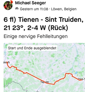 Die Strecke ist so unspektakulär (auch die Stadt Tienen) wie der Etappenort Sint-Truiden, wo wir uns im sterilen Business-Hotel Stayen fragen, ob man auf dem Flur den 100m-Sprint trainieren soll. Ü 95 €. Das opulente Frühstück für 21 €/pP gönnen wir uns. Das einzig nennenswerte Restaurant ist das El Greco - hochpreisig und sehr gut besucht und bedient. |