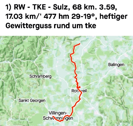 1) VS-Rottweil-Oberndorf-Sulz a. N. 68 km; 477 hm