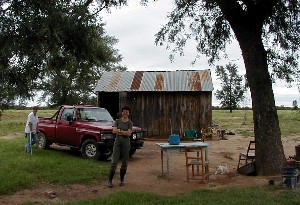 Hier im Corall schlägt das Herz der Wirtschaft. Es ist der örtliche Umschlagsplatz für Rinder, ein Klein-Chicago. Der Bauer kann nach Lebensgewicht oder nach dem Gewicht, was in der kooperativeigenen Schlachterei in Asunción übrigbleibt, verkaufen. Verkauft wird immer ein ganzer Corall, also eine ganze Herde. Die Mennoniten verstehen sich als "Rural Society", insofern hat letztlich jeder Land, der Seminarleiter, der Lehrer, der "Super"-Arbeiter. Man rechnet 1 ha für ein Rind, wenn man nicht überweiden will. Von 500 Rindern kann man ganz gut leben mit 2000 "Köpfen" ist man richtig reich. Mancher Lehrer hat nebenher 500 Köpfe! Der Fleischpreis und der in Aussicht stehende Export nach Chile und in die EU unter strengen Auflagen sind derzeit Thema Nr. 1. Der Fleischpreis liegt (2002) im historischen Keller: 40 USD-Cent für das Kilo Lebendgewicht. Entsprechend kostet ein Kilo bestes Rinderfilet (Lomito) 2,70 €! |